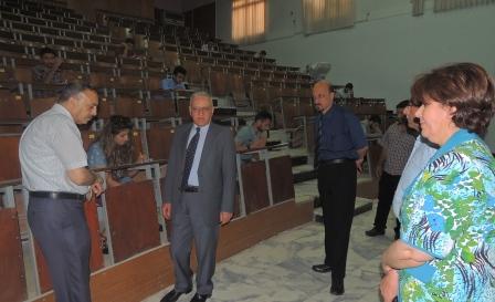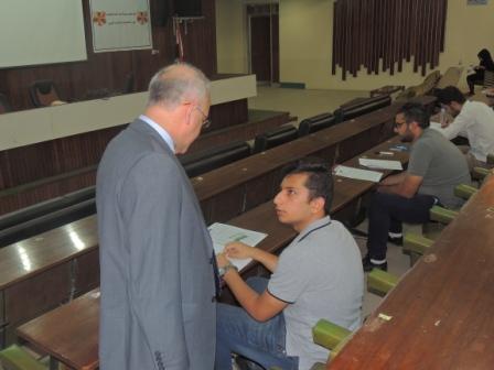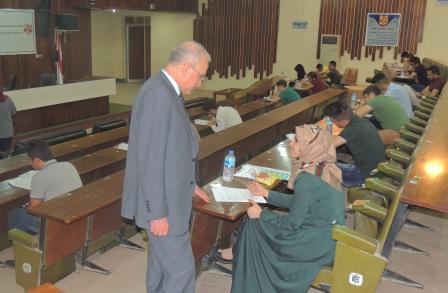 ضمن المتابعة المستمر لرئيس الجامعة وحرصه المستمرعلى الاطلاع على الواقع العلمي والخدمي والتزامن مع الامتحانات النهائية لهذا العام تفقد الاستاذ الدكتورعلاءعبدالحسين رئيس الجامعة يرافقة الاستاذ الدكتورعلي الشالجي عميد الكلية سير الامتحانات والاجراءات التي اتخذتهاعمادة الكلية لتوفير بيئة ملائمة للطلبة في القاعات الامتحانية من خلال المسلتزمات الضرورية التي يحتاجها الطالب لتادية الامتحان وشادة رئيس الجامعة بالدور الفعال الذي يقدمة الطالب لمجتمعه من خلال اجتيازة للامتحان بتفوق عالي وهذا خير مايقدمة لوطنه في هذه الظروف الصعبة ومن جهة اخرى ,عبرة العمادة عن اعتزازها بزيارة رئيس الجامعة والرعاية الابويه المستمرة لكافة الكليات
