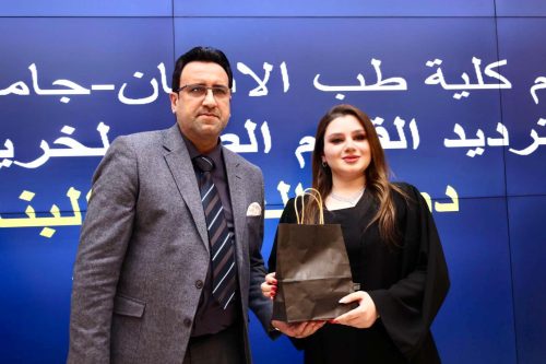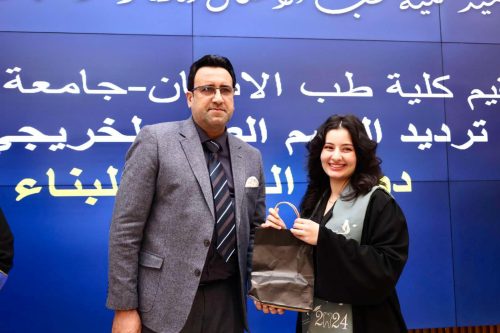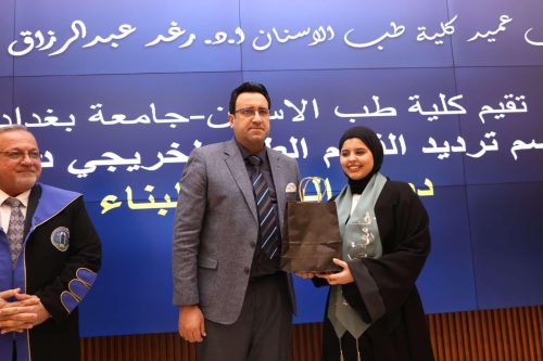 وأعرب عن فخره بهذه الكوكبة الجديدة من أطباء الأسنان الذين سيسهمون في تطوير القطاع الصحي في العراق، متمنيًا لهم مستقبلاً زاخراً بالعطاء والنجاح. كما نقل تهاني رئاسة جامعة بغداد وعمادة كلية الطب إلى عمادة كلية طب الأسنان متمثلة بعميدها الاستاذ الدكتور رغد الهاشمي متمنياً لهم دوام التقدم والنجاح في مسيرتهم العلمية والمهنية.