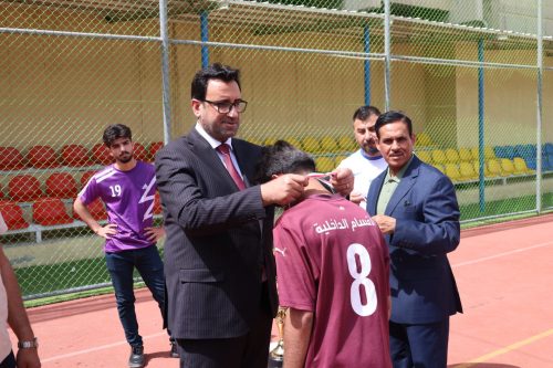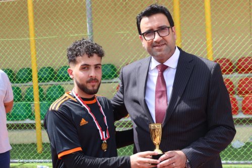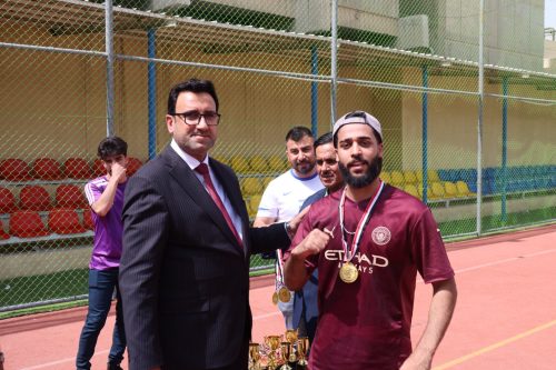 يذكر ان هذه المشاركة المتميزة قد تمت بحضور السيد عميد الكلية الأستاذ الدكتور أمين العلواني مشكوراً وقد قام بتكريم طرفي النهائي بالجوائز وكذلك التكريم الفردي لكل لاعب من هداف البطولة وأفضل لاعب وأفضل كابتن فريق وأفضل حارس وأفضل صانع العاب.