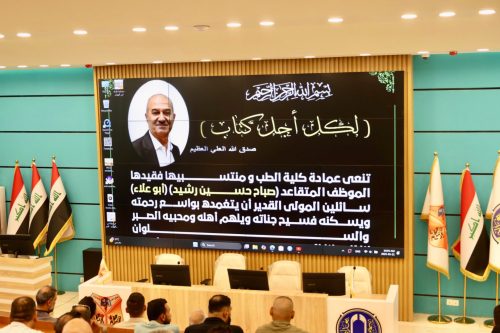 بحضور عدد من منتسبي كلية الطب جامعة بغداد، أُقيم صباح اليوم حفلٌ تأبيني وفاءً لروح الموظف المتقاعد صباح حسين رشيد (أبو علاء)، الذي رحل بعد سنوات طويلة من العطاء والإخلاص في خدمة الكلية.