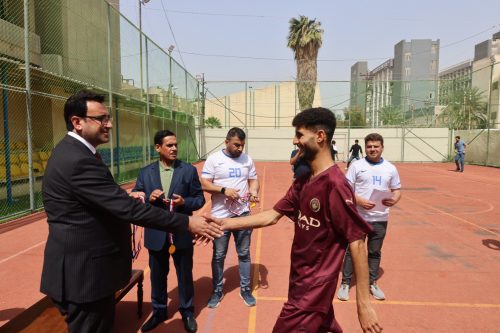 تسلَّم درع التفوق نيابة عن كلية الطب معاون العميد لشؤون الطلبة الأستاذ المساعد الدكتور أمير ظاهر حميدي، الذي مثل الكلية في حفل التكريم إلى جانب ممثلي الكليات الفائزة الأخرى (كلية الإعلام بالمركز الثاني، وكلية طب الكندي بالمركز الثالث لفئة الطلبة والطالبات، وكلية الإدارة والاقتصاد بالمركز الثالث لفئة الطالبات.