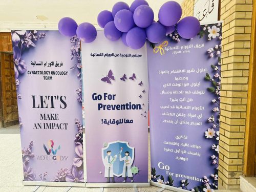 كما أعلن العميد عن إطلاق “حملة اللون البنفسجي” في كلية الطب – جامعة بغداد، لتكون الحملة مستمرة على مدار العام، من خلال الملصقات التوعوية والشاشات الإلكترونية داخل الكلية، دعماً للفحص المبكر، ونشر ثقافة الوقاية، والتنسيق مع وزارة الصحة ومراكز الأورام لتقديم أفضل الدعم للنساء.
